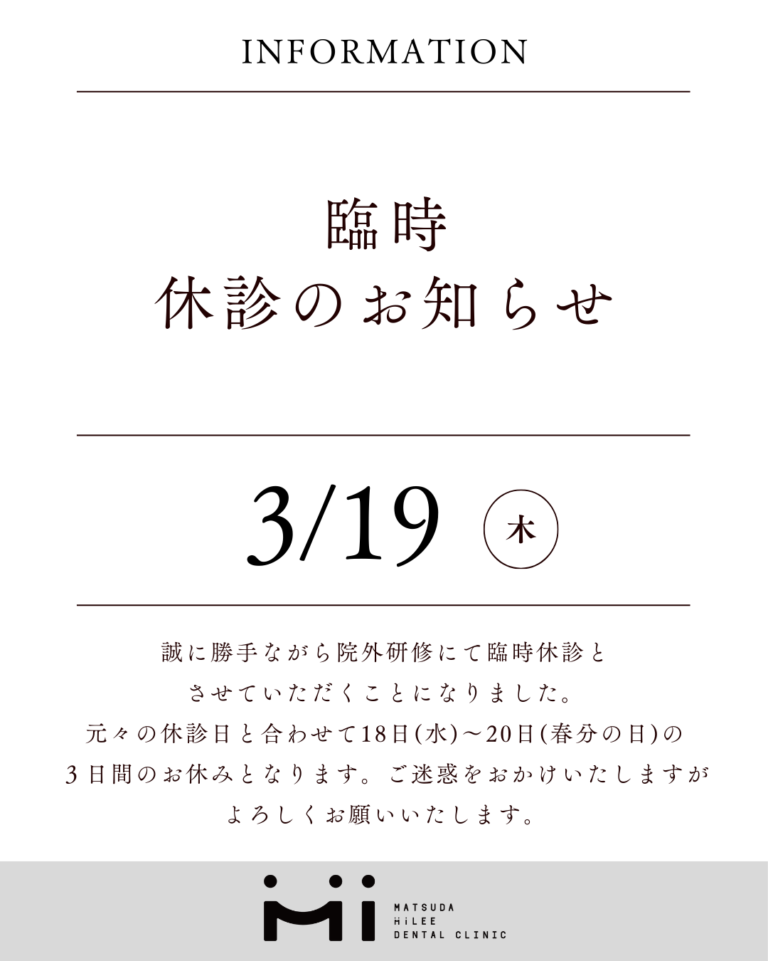 3月18日(水)休診(通常休診日)